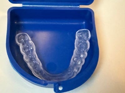 In a previous post I shared my journey with (potential) tinnitus, and how I had a visit with a TMJ doctor who fitted me with a…gulp…$1,500 mouthguard to help with my ear ringing issue. Here’s a picture of this doodad, in case you were wondering if it came with a flat-screen TV or lifetime Netflix membership (it doesn’t):